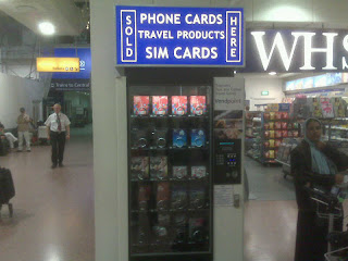 I have arrived in London...FINALLY! We had to wait on the tarmac for 45 minutes because Airforce One landed a few minutes ahead of us. Apparently Bush is visiting the Queen. I found the vending machines with prepaid SIM cards interesting.